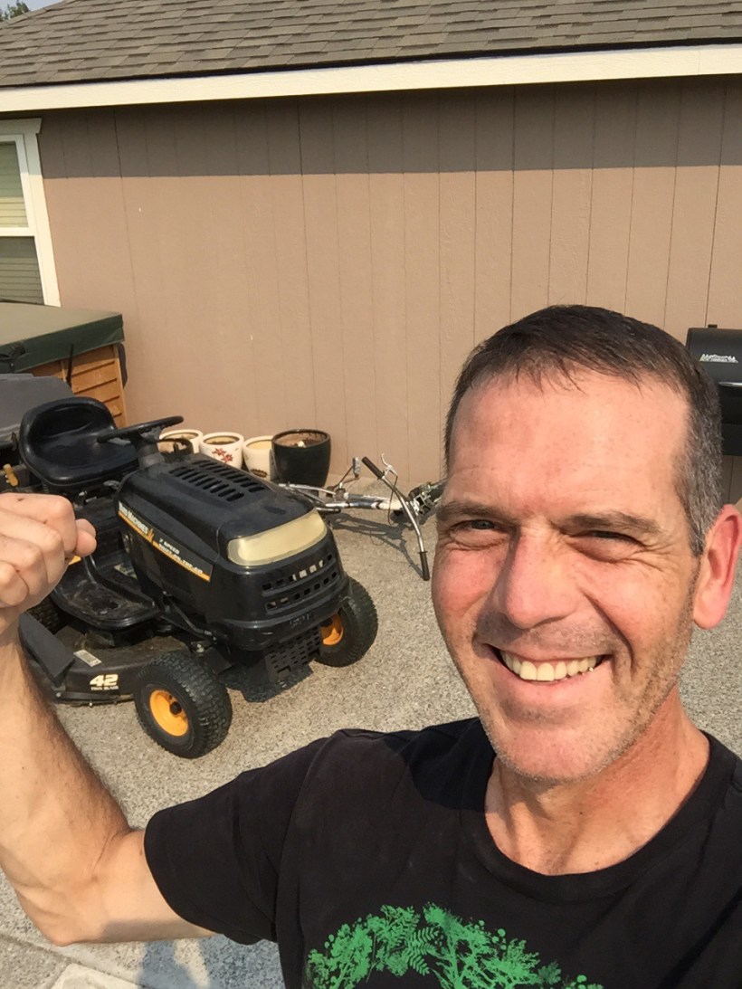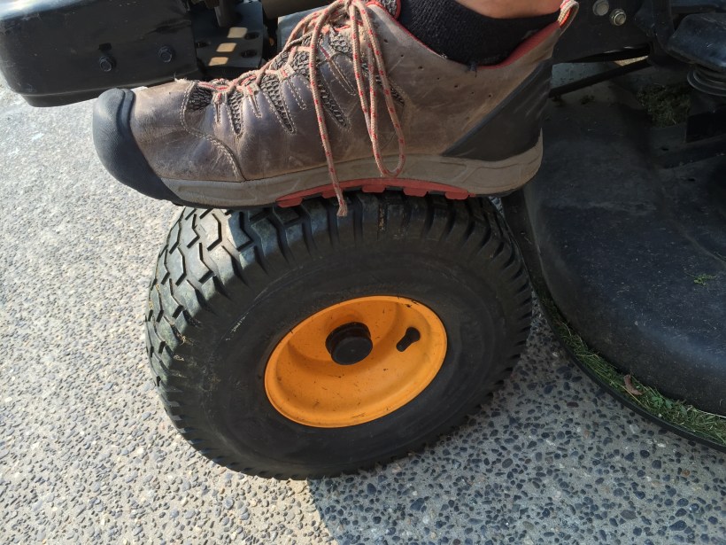 I got a flat tire on the lawn mower…uggggg.  All hopes of finishing the lawn begin to fade…